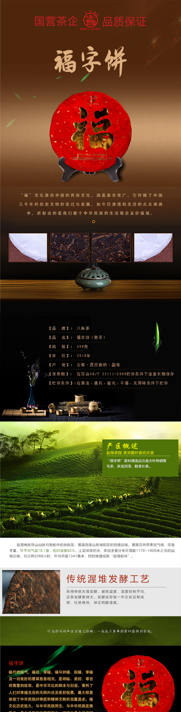 云墾茶業(yè)集團(tuán)下屬茶葉生產(chǎn)企業(yè)——云南農(nóng)墾集團(tuán)勐海八角亭茶業(yè)有限公司原名黎明茶廠,是我國(guó)歷史最為悠久的茶企之一,曾位列“中國(guó)普洱茶十大知名品牌”“十大最受歡迎茶葉品牌”、“中國(guó)普洱茶十大暢銷品牌”中,成為今天市場(chǎng)上最有影響力的品牌之一。公司產(chǎn)品獲得“綠色食品”、ISO9001、 HACCP和云茶品牌(YC)4項(xiàng)認(rèn)證,連續(xù)獲得“云南名牌農(nóng)產(chǎn)品”“云南名牌產(chǎn)品”“云南省著名商標(biāo)”等品牌榮譽(yù),公司生產(chǎn)的多款普洱茶在歷次專業(yè)評(píng)比中多次獲得特等金獎(jiǎng)和金獎(jiǎng)。在2018第五屆中國(guó)企業(yè)五星品牌論壇上,云南農(nóng)墾集團(tuán)勐海八角亭茶業(yè)有限公司上榜中國(guó)普洱茶行業(yè)影響力品牌——“金芽獎(jiǎng)”,公司負(fù)責(zé)人陳勝軍先生獲“陸羽獎(jiǎng)”,被授予2017“國(guó)際十大杰出茶人”榮譽(yù)稱號(hào)。