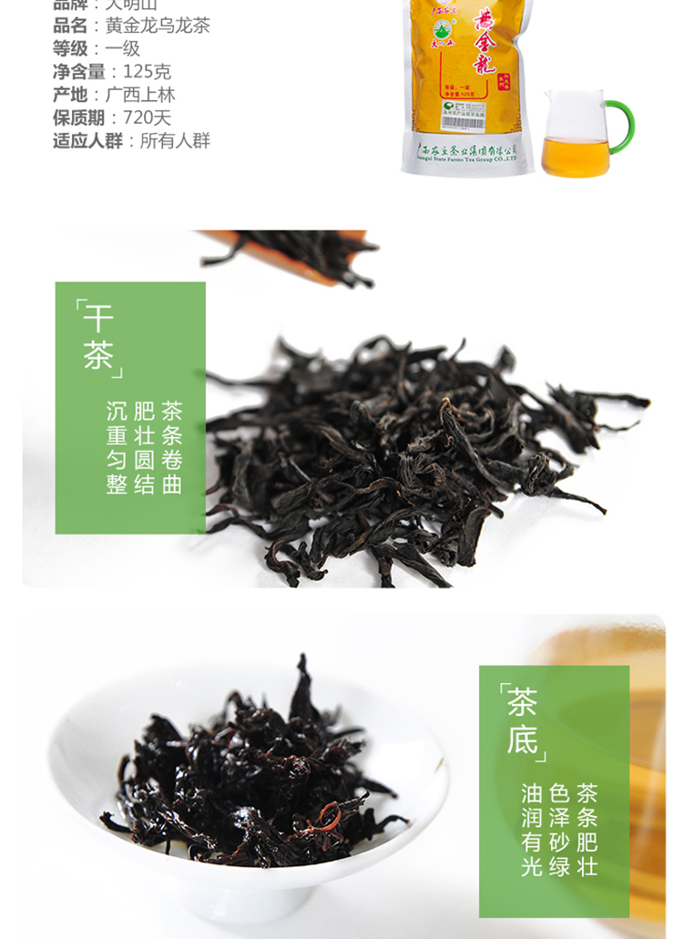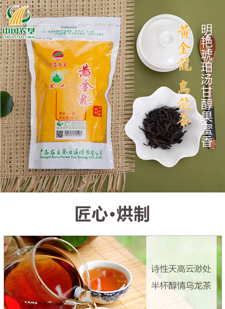 大明山 黃金龍烏龍茶 農墾茶葉 大明山茶 廣西上林特產 一級烏龍茶 125g袋裝